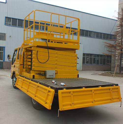 車載剪叉式升降機集四輪移動與二輪牽引式于一身,采用汽車底盤做平臺底架,利用汽車發(fā)動做動力,既可行駛又可驅(qū)動升降平臺。產(chǎn)品以小型貨車(汽車)或電瓶車為載體,移動靈活迅速,操作簡單,作業(yè)范圍廣。車載剪叉式升降機采用剪式升降結(jié)構(gòu),剪叉結(jié)構(gòu)采用優(yōu)質(zhì)矩形錳鋼管制作,整體強度高,載重量大,升降穩(wěn)定性好,廣泛用于城建、油田、交通、市政等行業(yè)。根據(jù)個人要求可設(shè)停電情況下的應(yīng)急下降裝置、平衡閥、自動保壓等安全裝置,防止升降平臺超載的安全裝置、漏電保護裝置和缺相保護裝置、防止液壓管路破裂的安全防爆裝置。 產(chǎn)品控制方式:產(chǎn)品均由電動控制升降。根據(jù)產(chǎn)品分類可分為6米、8米、10米、12米、14米、16米移動式高空升降臺,載重300公斤、500公斤、800公斤、1噸等不同規(guī)格,還可根據(jù)客戶需求定制非常規(guī)規(guī)格,還可選用解放、輕騎、電瓶車等不同動力配套,移動方便靈活。車載剪叉式升降機廣泛適用于大型工業(yè)廠房、展覽館、野外工作、公園、郵政、車站、碼頭等室外場所均可使用。